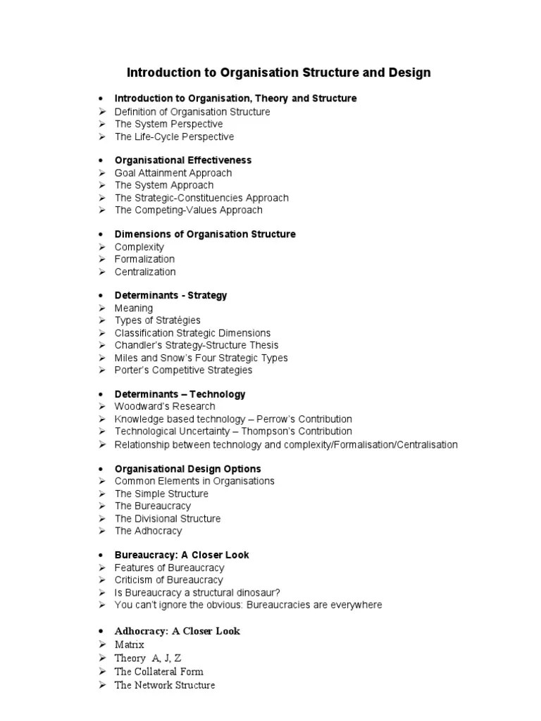 This theory proposes that an ideally run organization consists of a group of people. You should try to have a good business structure in place so that even if something goes wrong you can handle it. Theories of organizational structure and innovation adoption. The role of environmental change.