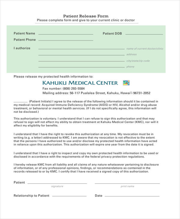 Hipaa Release Of Information Form Mental Health