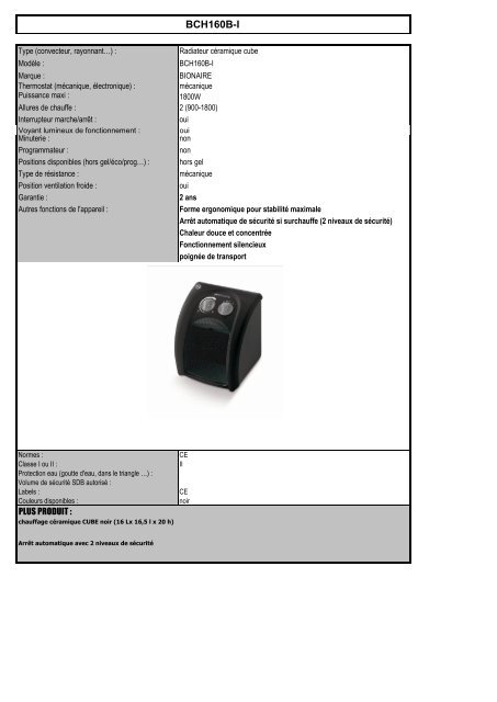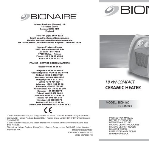 Bionaire Chauffage Soufflant Bionaire Bch160b I Mode D Emploi Et