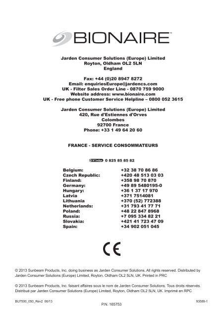 Bionaire Bap1700 Chez Vanden Borre Mode D Emploi Et Accessoires