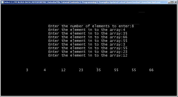 Insertion Sort Program In C With Output