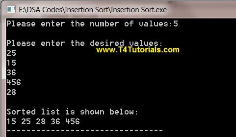 Insertion sort program in c with output. Here is the program to sort the given integer in ascending order using insertion sort method. Please find the pictorial tutor of the insertion sorting. Insertion sort is a simple sorting algorithm that works the way we sort playing cards in our hands. Algorithm sort an arr of size n insertionsortarr n.