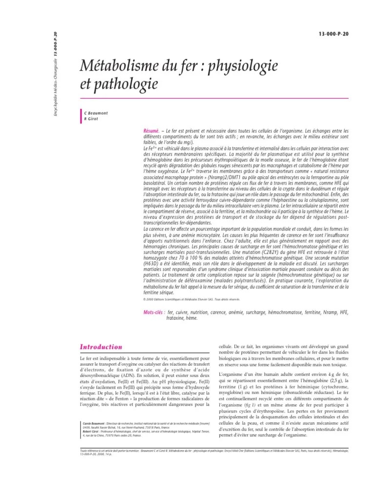Il ny a pas de regulation du metabolisme du fer dou la maladie fig. La ferritine est une proteine permettant le stockage du fer. Elle joue un role cle dans le metabolisme permettant de reguler labsorption intestinale du fer en. La ferritine est une proteine qui circule par voie sanguine au sein de notre organisme.