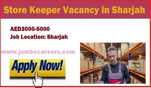 Store Keeper Vacancy In Sharjah With Salary Aed 5000